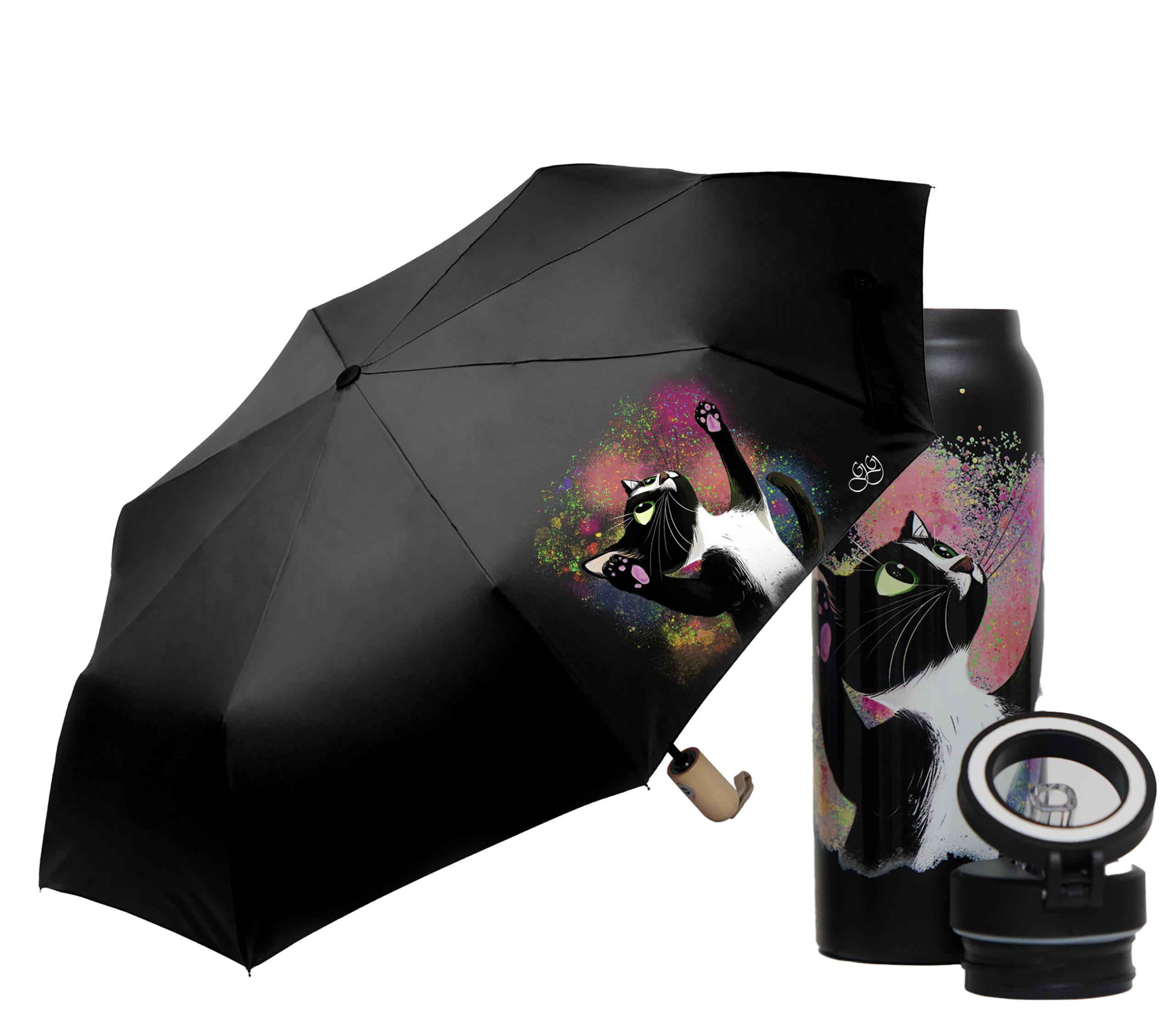 Nuestros paraguas antiviento de telas recicladas y nuestras botellas de acero inoxidable con ilustraciones exclusivas son la forma más práctica y original de cuidar de ti y del planeta.